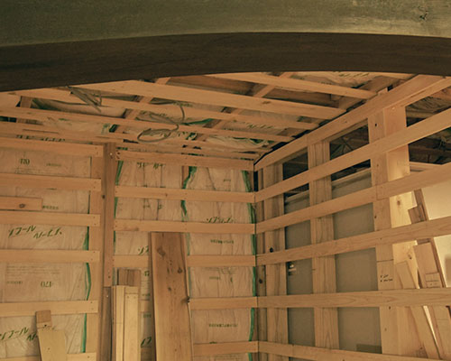 昔ながらの梁を活かして、ひろがりを持たせた空間づくりを施主さんとつくりました。お家の構造を活かしつつ奥さんの使い勝手のいいキッチンや奥の間を二期工事として施工しました。