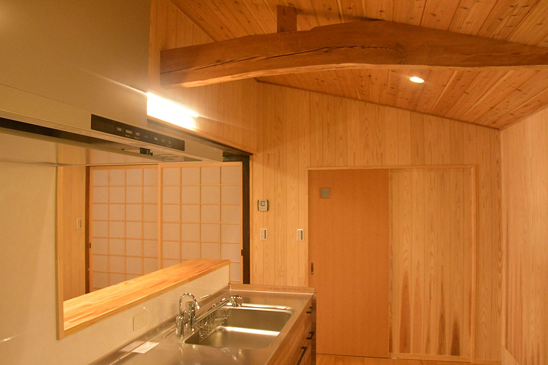 お家の構造を活かしつつ奥さんの使い勝手のいいキッチンや奥の間を二期工事として施工しました。